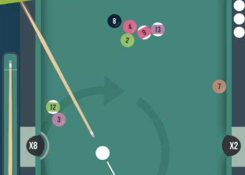 2.玩家可通过滑动屏幕来控制杆子,使桌球撞击到目标球。