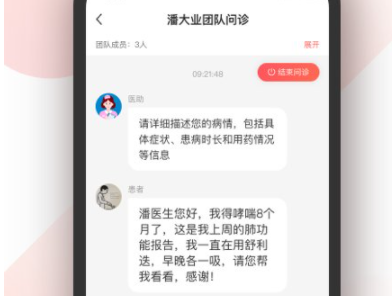 2、在线接诊:开始接诊后,病人可以在用户版上看到在线医生,随时进行咨询。