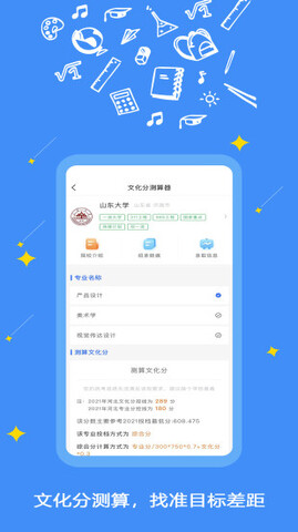 1.有各省市的艺术高校招生信息,可搜索、查看学校的基本情况、录取条件、历年分数线等。