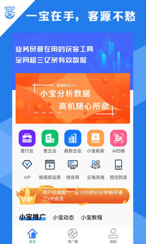 客源小宝是一款专门用于精准获得客源的软件,十分注重推广和转化,并且具备图文推广和客源采集等全方位的营销功能,可以帮助商家快速、精准地获取客户资源,非常强大。客源小宝软件凭借着大量、准确、及时、高活跃度的客户资源数据,为企业提供全员营销的助力,方便企业对客户进行数据化管理。有需要的用户,就快来下载吧!