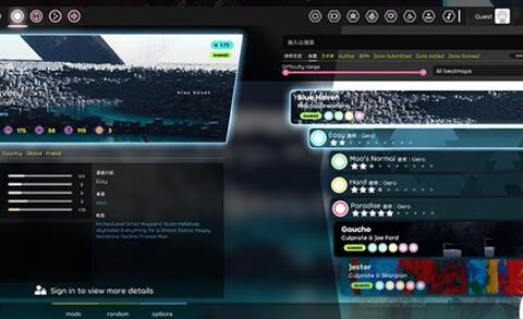 3.需要根据音乐的节奏和节拍,在屏幕上点击、拖拽、旋转鼠标来击中游戏中出现的圆形或者滑块。