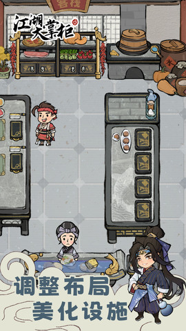 江湖大掌柜是一款全新的古风经营模拟类手游,画风清新,音乐温馨,玩家扮演的是一名江湖掌柜,需要在江湖中开设商铺,赚取金钱、招募侠客、打造装备、完成任务等,体验身临其境的江湖世界。江湖大掌柜手游中玩家需要提供美味的食物以及舒适的环境,吸引大量的顾客光临评分,积累金币去扩大规模,成为最知名的客栈。喜欢就来下载吧!