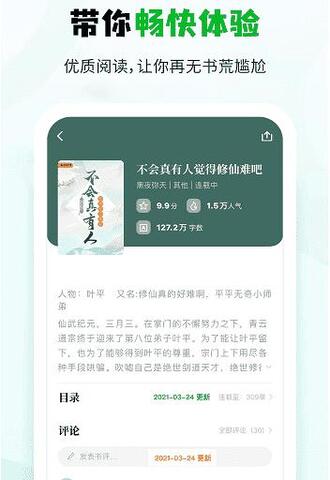 3.下载的软件会根据阅读历史和兴趣偏好,推荐相关的优质小说,让用户更容易发现适合自己的作品。