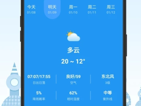 多种天气预报功能,让您预知未来天气,出行轻松无忧。