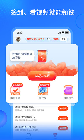 3.金币福利,新人红包,阅读任务,金币持续累计,看看书就能赚钱。