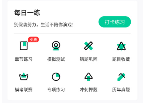 2.精心打造海量题库,设置不同版块,帮助您打磨知识点。
