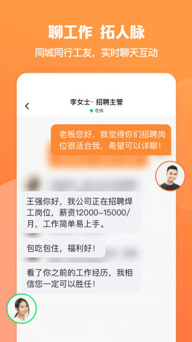 1.提供在线聊天功能,用户可以与企业的HR进行实时沟通和交流,了解招聘要求和岗位详情。