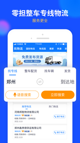 精准的车源检索和有效管理货源,让广大用户找物流更容易。