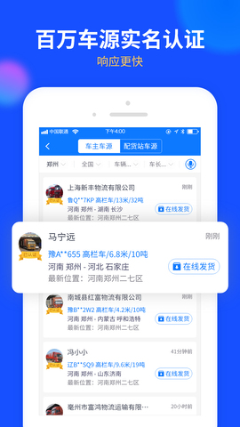 2.支持在线一键发布货源,百万物流司机实时响应接单。
