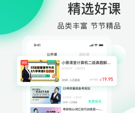 小黑课堂app是一款专业的考证备考网课软件,提供计算机一、二级考证、考研、英语四六级、教师资格证、职场课等免费题库,还有专项训练、综合训练、试题搜索、模拟考试等功能,帮助用户轻松通过考试。小黑课堂app还拥有一支专业的教师团队,他们在各个领域有丰富的教学经验,能够为用户提供高质量的教学内容和指导。